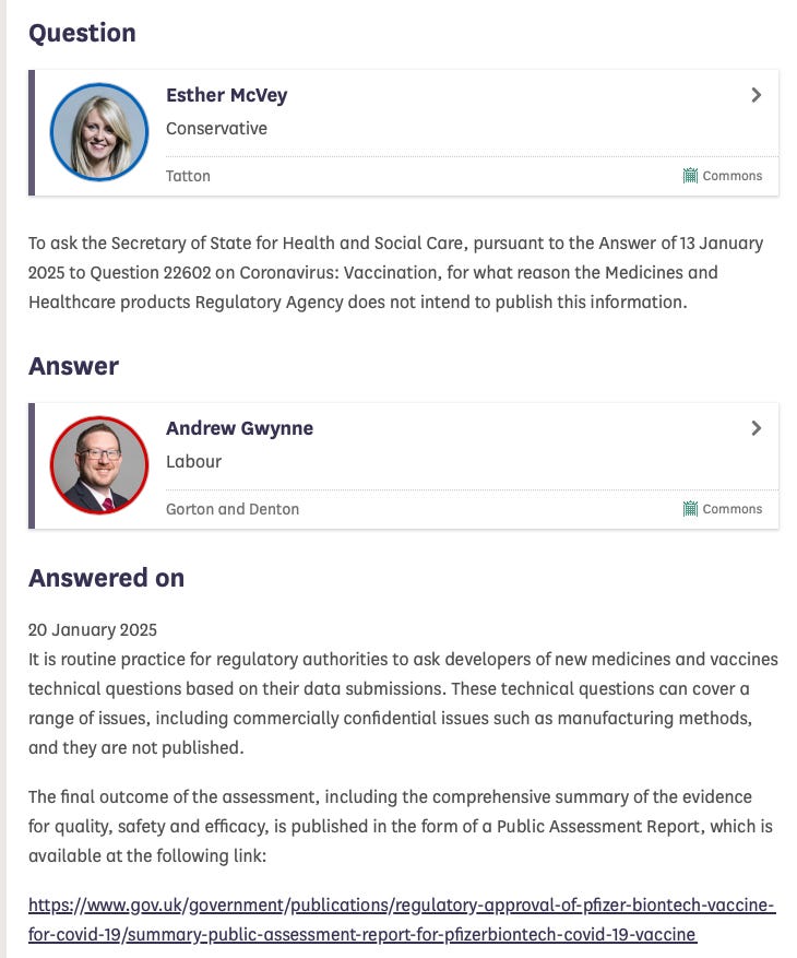 The MHRA’s Expert Working Group posed 36 questions, which we assume were mainly about the pharmacokinetics of the Covid vaccine, as we reported in Part 2 of our series: