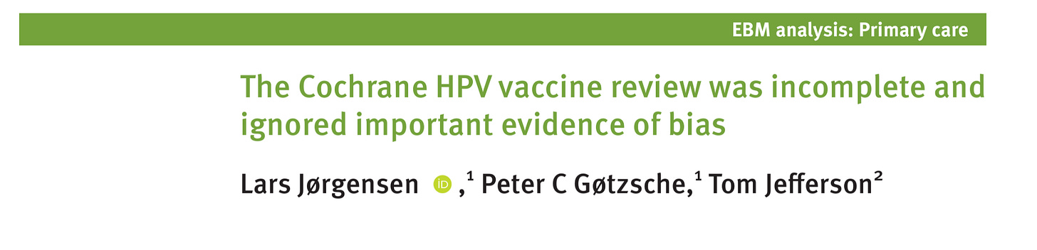 Part of this push included an analysis piece on the Cochrane HPV vaccine review, which claimed that the review was incomplete and overlooked significant evidence of bias.