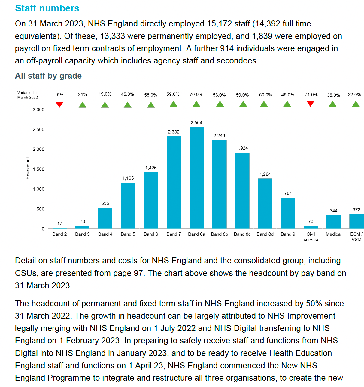 According to Wikipedia. NHS England had 6,500 employees in 2021. Another source puts the number at over 10,000. The Report cites on page 88: